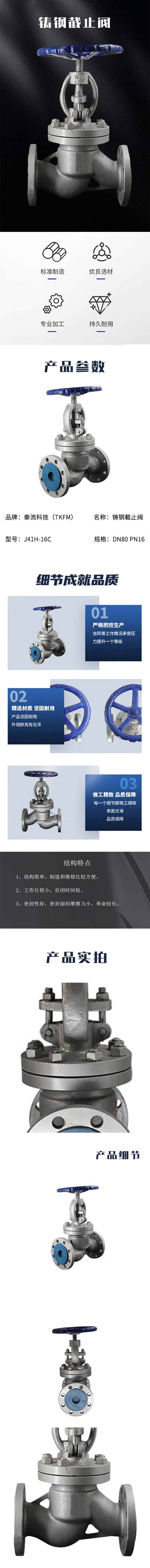 泰流科技 J41H-16C 铸钢截止阀 DN80 PN16 个按(个)销售   收藏