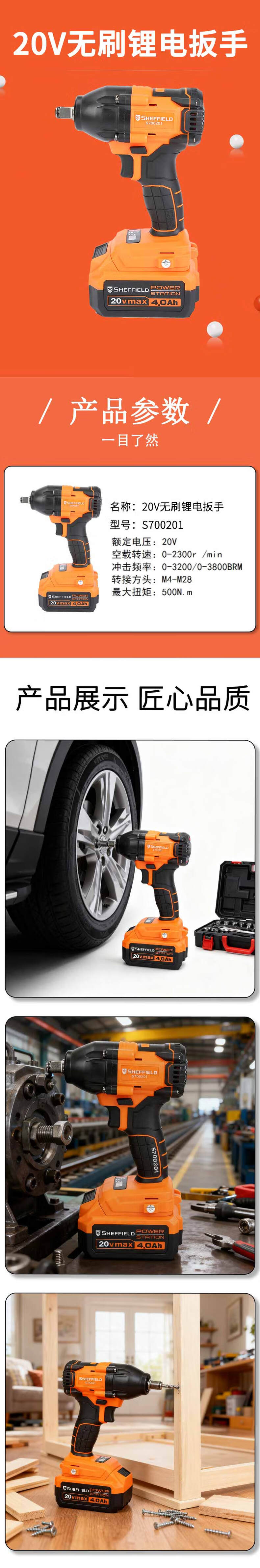 钢盾 S700201 电扳手 20V无刷锂 单位:台按(台)销售   收藏