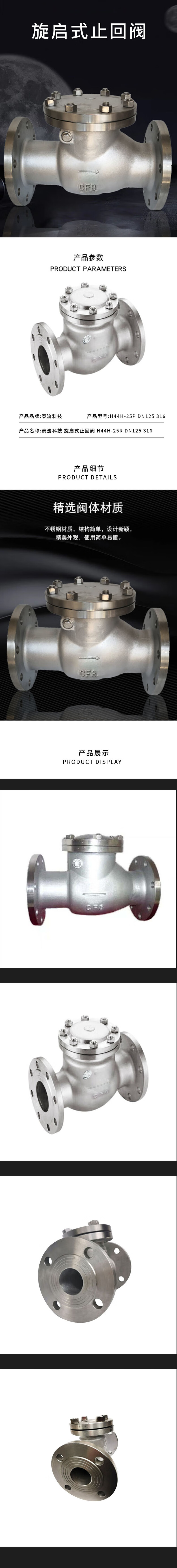 • 泰流科技 H44H-25R DN125 PN25 316不锈钢旋启式止回阀  台按(台)销售