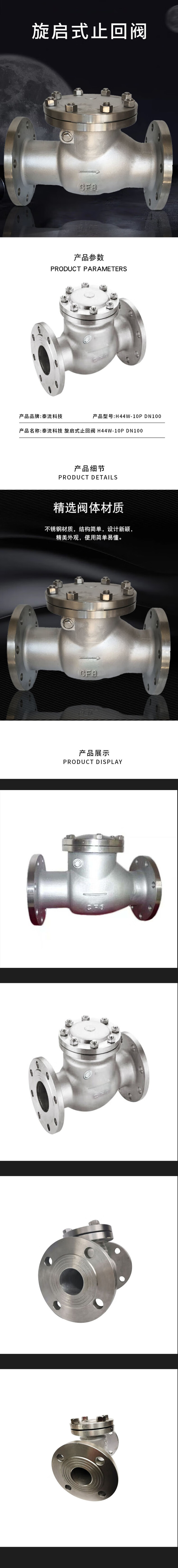 • 泰流科技 H44W-10P DN100 PN10 不锈钢旋启式止回阀 台按(台)销售