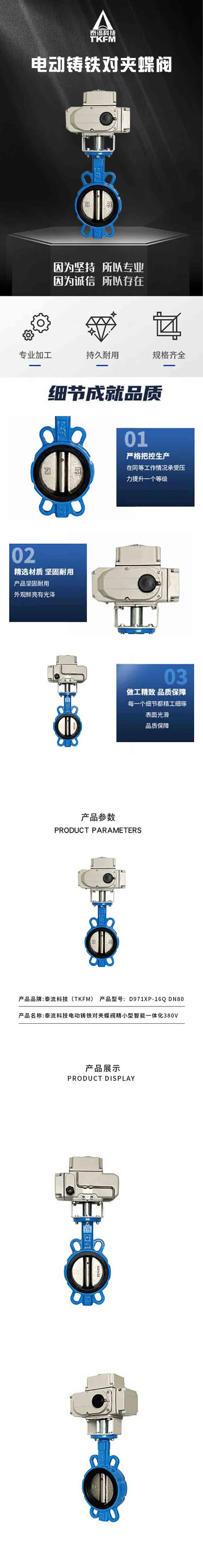 • 泰流科技 D971XP-16Q DN80 电动铸铁对夹蝶阀  精小型智能一体化380V PN16 台按(台)销售