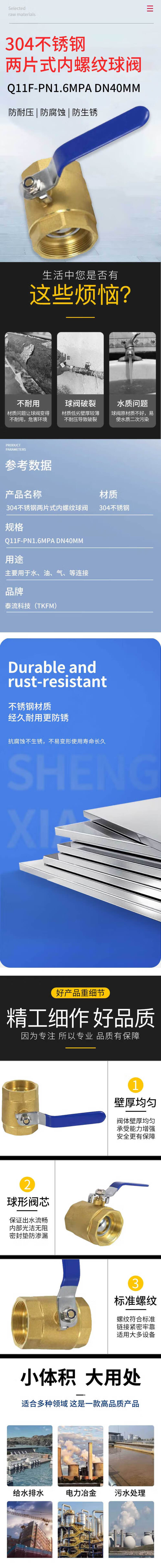 供应商:史泰博 品牌:泰流科技 产地:中国 销售单位:台 包装清单:304不锈钢两片式内螺纹球阀*1