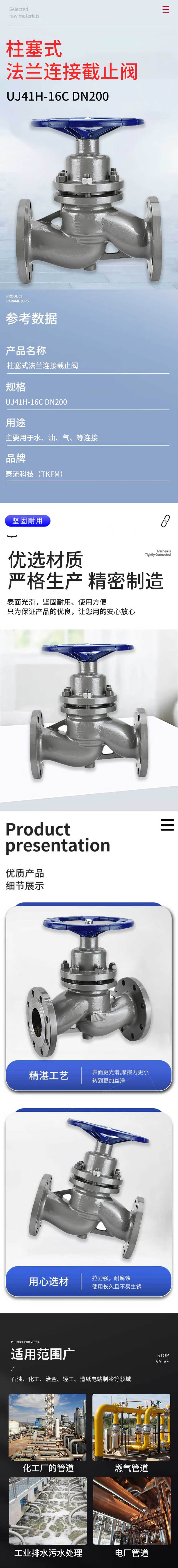 泰流科技 UJ41H-16C DN200 PN16 柱塞式截止阀 法兰连接 台按(台)销售   收藏