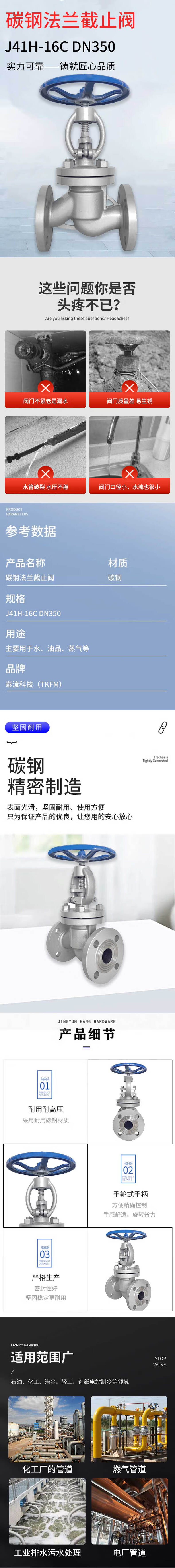 • 泰流科技 J41H-16C DN350 PN16 截止阀 碳钢法兰 台按(台)销售