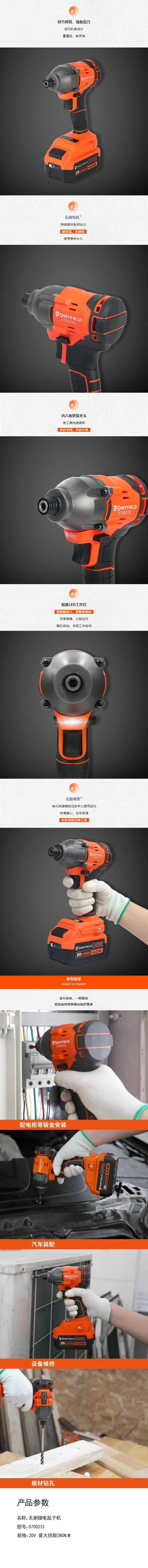 钢盾 S700213 无刷锂电起子机 20V 最大扭矩280N.M 单位:台按(台)销售   收藏