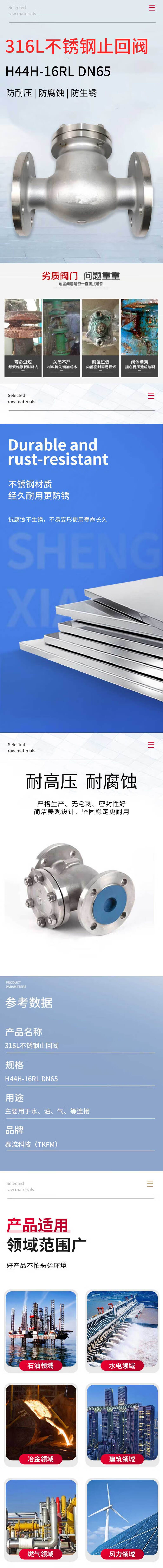 • 泰流科技 H44H-16RL DN65 PN16 316l不锈钢止回阀 台按(台)销售