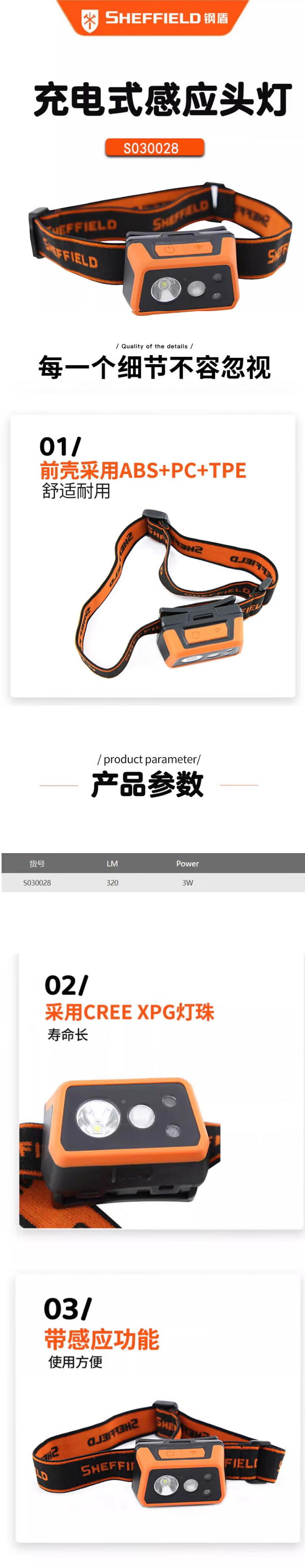 钢盾 S030028 工作灯 充电式感应头灯 单位:个按(个)销售   收藏