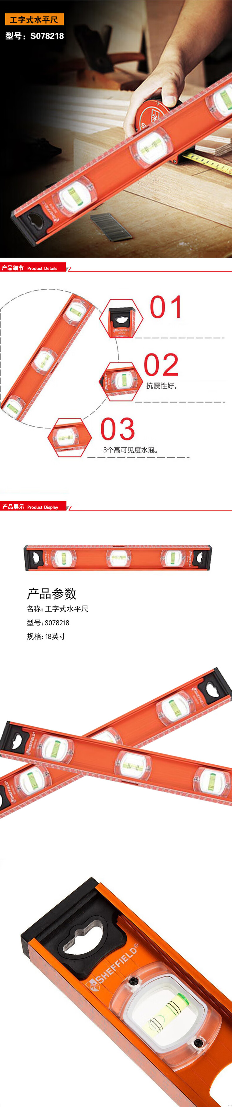 钢盾 S078218 水平尺 工字式 18英寸 单位:把按(把)销售   收藏