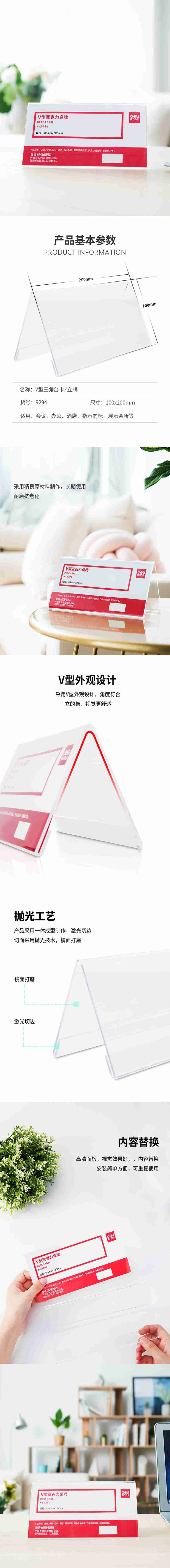 • 得力 9294 v型三角台卡 立牌/展示牌 200×100mm 单位:个按(个)销售