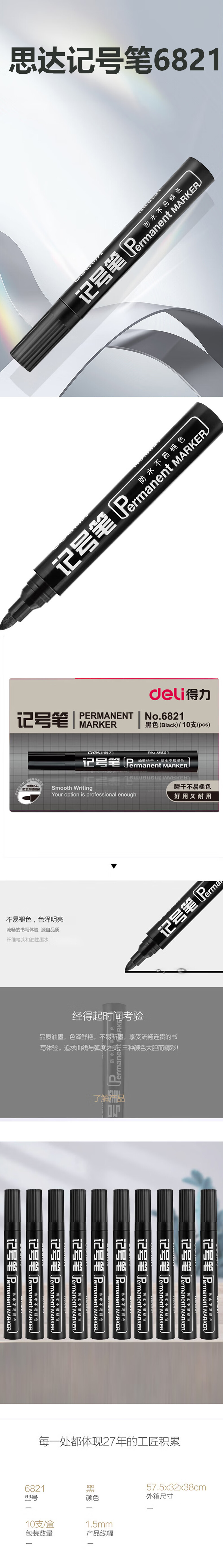 • 得力 6821 思达记号笔  黑色 10支/盒 单位:盒按(盒)销售