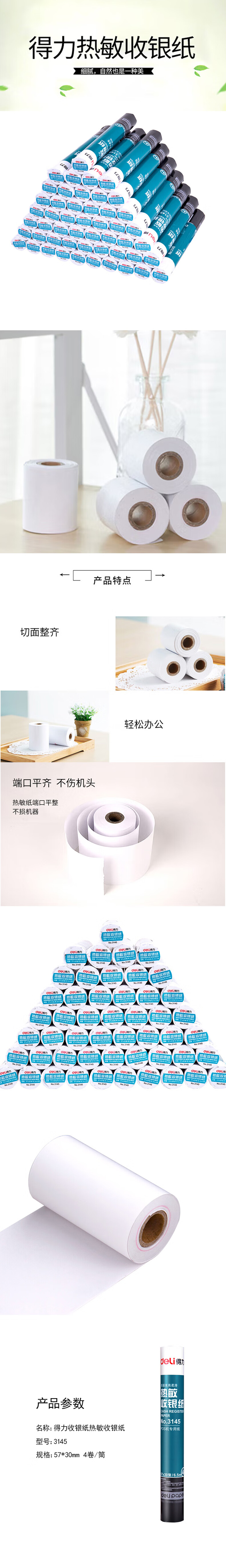 • 得力 3145 热敏收银纸  57*30mm 4卷/筒 单位:筒按(筒)销售