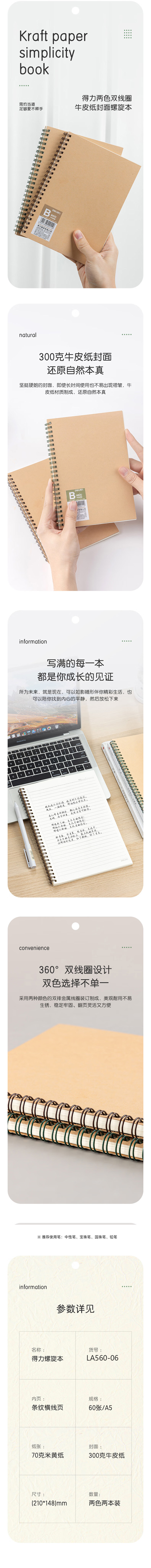 得力 LA560-06 螺旋本 混色 2本装 单位:组按(组)销售   收藏